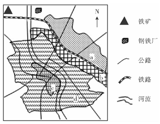 1、单选题 该图为某城市主要功能分区示意图且功能区分布合理。读图,完成下题。