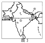 2、单选题 图5为世界某地区,读图回答问题。