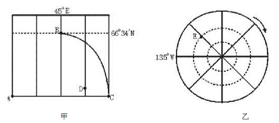 4、综合题 下图中AC为赤道,BC为晨昏线的一部分,此时D点的地方时为15点,读图后回答问题。(7分)