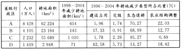 A、生态退耕是四个省(市、区)耕地面积减少的主要原因