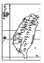1.台湾岛上的河流具有短小流急、水力丰富的特点,与这一特点无关的是2.图中①②③④四地中降水相对较多的是