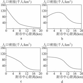 2、单选题 下图是“某城市不同时期人口密度与距市中心距离关系图”,读图完成(1)—(3)题。