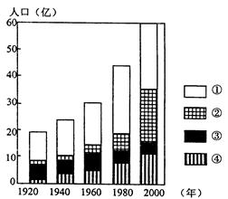2、单选题 读“世界人口比重增长图”,其中四种图例分别表示发达国家、发展中国家的城市人口和农村人口,完成1-2题:
