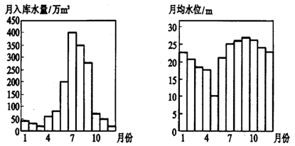 【小题1】从图上可以看出,1~7月流域的降水量在2、3两个月在减少,所以A错误;夏秋季节由于流域内降水增加,所以入库的水量是增加的,而不是减少;冬春季节时,我国各地降水减少,所以入库的水很少,而从水库出库的水却更多,在冬季时,因为入库的水要比出库的水更少,所以水库的水量会减少,而不是增加,故选C。