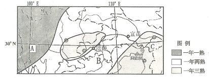 分异。下图为我国某地区农作物熟制分布图。读图回答问题。