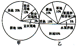 2、单选题 读我国东部地区甲、乙两省区土地利用现状图,回答1—2题。
