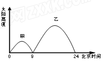 5、单选题 图为“北半球夏至日甲、乙两地太阳高度日变化图”,读图完成题。