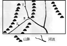 2、单选题 下图为某地理兴趣小组所绘的“25°N附近某区域示意图”,为正确标注该图的方向,他们测得M城2012年3月15日日出、日落分别在X、Y方向。读图完成1-2题。