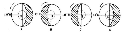小题2:与上图对应的太阳光照图正确的是(图中阴影部分表示黑夜)