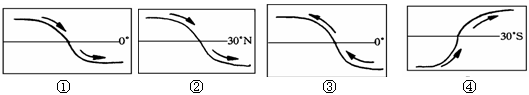 【小题2】一条东西流向的河流,其上游南岸冲刷厉害,而北岸有沙洲形成,其下游则北岸冲刷厉害,南岸入海处形成河口三角洲。与河流位置和流向相吻合的图是