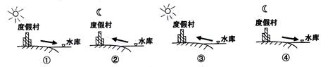 1.由于陆地和水域的热容量的差异,故白天,度假村的气温较水库高,故度假村盛行上升气流,近地面形成低压,而水库盛行下沉气流,近地面形成高压,故近地面的风由水库吹向度假村,故③正确;而晚上,度假村的气温较水库低,故度假村盛行下沉气流,近地面形成高压,水库盛行上升气流,近地面形成低压,故近地面的风从度假村吹向水库,故④正确。