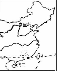 5、综合题 根据图中海口、汕头、秦皇岛三城市的地理位置,运用所学知识分析并回答问题。(11分)