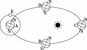 2.当地球绕日公转运行到A处,则