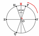 ,则∠MOF=20°;P点刚好进入极夜时,则太阳直射点位于M,即20°S,此时P点以内的北极地区进入极夜。当太阳直射点位于M′,与其垂直的P′及以北的北极地区进入极夜,P点也为极夜,如图
