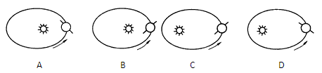 3、单选题 下列四幅表示地球绕日公转的示意图,最有可能表示地球处于冬至日节气的是( ?)。