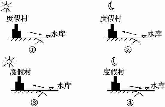 本题解析:1.本题主要考查学生关于大气的热力环流的知识。根据所学可知,度假村和水库热力性质不同,白天度假村受热升温快、温度高而成低压.水库升温慢、温度低而成高压,两