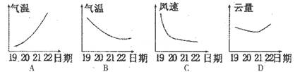 【小题2】下列为某研究性学习小组绘制的该城市4天内天气要素变化示意图,最接近实际状况的是( )