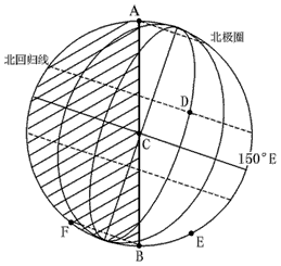 (2)这是________月________日前后的光照图。此日,D点的白昼比E点________(长或短)。
