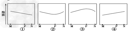 2.下图四图中与M、P、N一线上空等压面的剖面线相符合的示意图为?