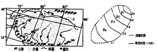 1、单选题 流域内各点的水量汇流速度和汇流时间有一定的差异。等流时是流域内的水汇流到河流指定地点,时间相同的点的连线。右图为左图区域内某河段等流时线图。回答小题。