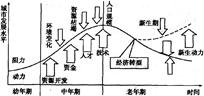 资料二?资源型城市发展机制和发展轨迹示意图(右图)