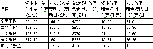小题3:东北和新疆的人力投入量最低,人力效率最高,反映出