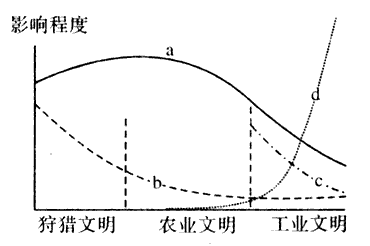 1、单选题 读人类文明进程及社会经济增长主导因素变化示意图,完成1~2题。