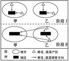 小题1:阶段Ⅰ鲜花和蔬菜产区形成的主要区位因素是: