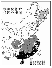 第三期目标亩产900公斤高产攻关获得成功。读我国水稻优势种植区分布图(右),回答问
