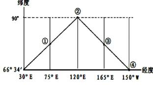 (3)此时太阳直射点的位置是                。此时正午太阳高度角达到一年中最