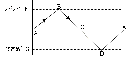 【小题1】当太阳直射点位于B点这一天,下列说法正确的是(   )