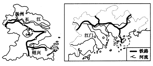5、综合题 下图分别是我国长江三角洲和珠江三角洲经济区示意图,读后回答问题。