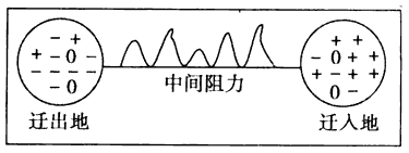 2、若图中的迁出地是2003年的伊拉克,其人口向他国迁移的中间阻力最有可能的是