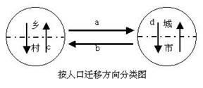 2、单选题 读人口迁移方向的分类图,回答2个小题。