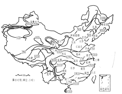 1.我国年平均总降水时数的分布2.下列关于年平均总降水时数分布的不合理解释是