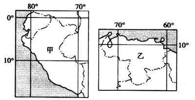 1、单选题  下图为甲、乙两国轮廓图,回答下列各题。
