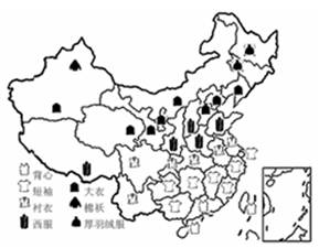 2、单选题 下图我国某日穿衣指数(对人们适宜穿着的服装进行分级,提醒适当着装)分区图,造成其分布的主要因素是