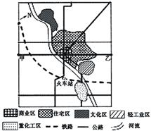 4、单选题 某城市地处平原地区,如右图,若该城市功能分区合理,则其主导风向和河流的大致流向可能是