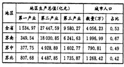 小题2:根据表格数据计算,注意比重,应计算第一产业占总产值的比例。影响区域农业生产的自然条件应从气候、地形、土壤、水源等因素分析,注意评价应从优势和不利条件分析。