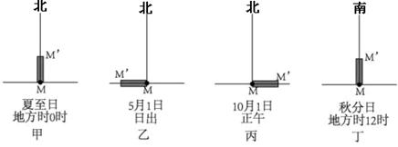 小题3:若在M地垂直立竿,图中节气为M所在半球的节气,则图中MM?所示日照竿影朝向正确的是