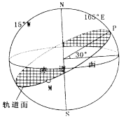 材料二?下图为一假想宇宙飞船M绕地球公制轨道及方向的示意图。M第一次到达P点的时间是2005年10月6日8时(北京时间),飞船往返于最南与最北的时间间隔是1小时。