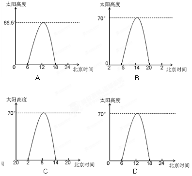 小题2:若P点坐标为(70°S, 0°),M为OP的中点,关于该日M点太阳高度的日变化统计有如下四图,其中正确的是