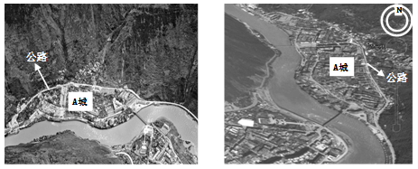 4、单选题 左图为摄影爱好者拍摄的A城景观图,右图为当地遥感地图。读图回答下列各题。
