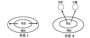 1.阶段 I 所表示的城市化阶段是2.引起阶段II形成的最主要原因是