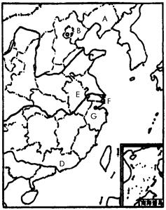 1、单选题 读“东部沿海地区图”,并回答问题。