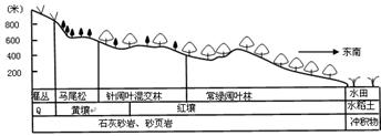 1、单选题 读“某地自然环境剖面图”,回答问题。