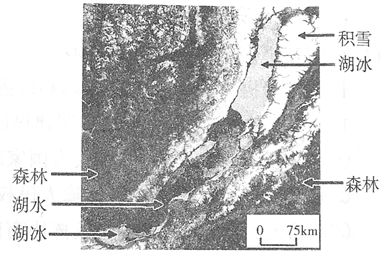 3、单选题 贝加尔湖是世界上最深和蓄水量最大的淡水湖,湖水清澈透明,湖面常会出现4米以上的风浪,每年都有几个月被厚厚的冰层覆盖,春天一到,湖面开始缓慢的融冰过程。在贝加尔湖佩夏纳亚湾距离湖面100~200米的沙滩上生长着一些神奇的松树,这些松树有2~3米高的根部裸露在地上,成年人可以自由的从根下穿行,当地人称之为“高跷树”,下图为某年5月贝加尔湖遥感图像,读下图回答下列各题。