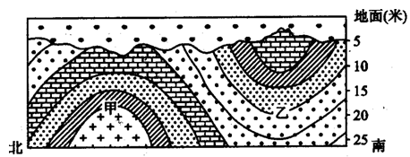 (1)判断甲、乙两地的地质构造:甲为?,乙为?。(2分)