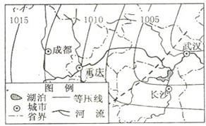 (1)重庆此时的风向为?风,图中虚线为??(冷或暖)锋的锋线,该天气系统到达长沙时,长沙将出现降水、?等天气。
