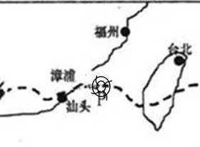 4、单选题 下图是2010年第11号台风“凡亚比”的路径示意图。读图回答完成下列问题。